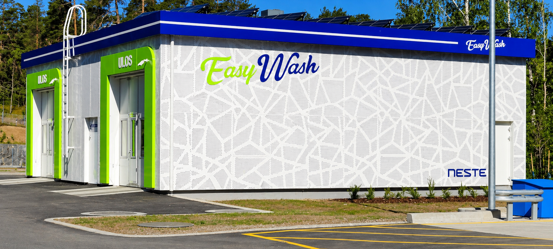 PP-Tuote toteutti Neste Easy Wash Helsinki Laajasalon julkisivun valmistuksen peltilevystä. Kohteessa käytettiin näyttävää PP-Tuote Sirpaleet -mallia, joka tuo julkisivuun modernia ilmettä, rytmiä ja tunnistettavaa pintarakennetta.